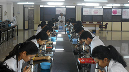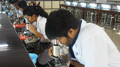 Department has a spacious air conditioned dissection lab to accommodate 275 students. It has an attached cold storage room and embalming room. Ample cadavers are available for the students to dissect and have a real time experience. Other learning aids like LCD projector with screen, prosected specimens, skeletons, bone set are available in the lab. Instruments like drilling machine, meat cutting machine, cadaver injecting machines are available in the lab. We have a spacious air conditioned histology lab to accommodate 150 students at a time. Adequate number of binocular, trinocular and dissection microscopes are available for the students to study the microscopic features of the tissues. Lab has an attached preparation room for slide preparation which is well equipped with instruments like rotary microtome, automatic paraffin embedding bath, distilled water unit, etc
