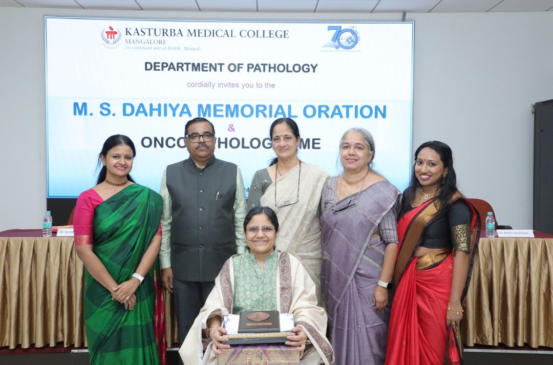 The 1st M. S. Dahiya Memorial Oration and Oncopathology CME was organized by the department of Pathology, Kasturba Medical College, Mangalore on October 26, 2024. The event focused on updates in oncopathology with a special emphasis on neuro-oncology. The keynote speaker, Dr. Sonika Dahiya, an alumna of KMC Mangalore and a distinguished neuropathologist at Washington University, St. Louis, delivered the M.S. Dahiya Memorial Oration on "Recent Updates in Meningioma."