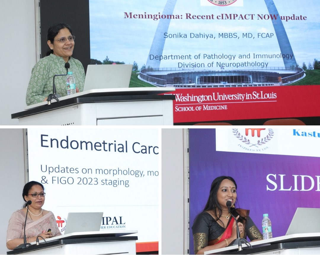 The program began with a session on "Endometrial carcinoma: Updates on morphology, molecular characterization & FIGO 2023 staging" by Dr. Vidya Monappa, followed by the formal inauguration of the event. Dr. B. Unnikrishnan, Dean of KMC Mangalore, was the chief guest for the inauguration ceremony. Dr. Dahiya’s oration highlighted advancements in the understanding and treatment of meningiomas, with a focus on molecular markers and recent classification.