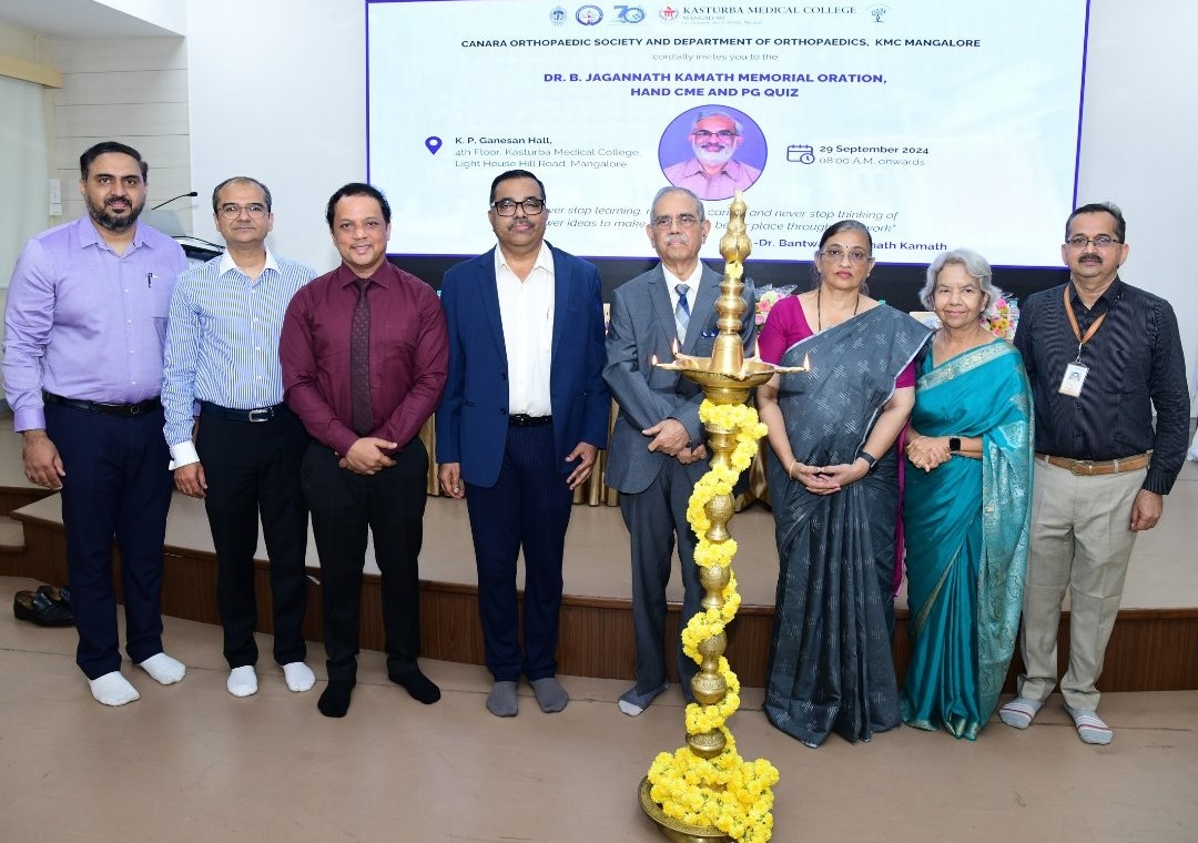 The first Dr. B. Jagannath Kamath Memorial Oration, Hand CME, and PG Quiz was held on 29th September 2024, organized by the Canara Orthopaedic Society and the Department of Orthopaedics, KMC Mangalore.
