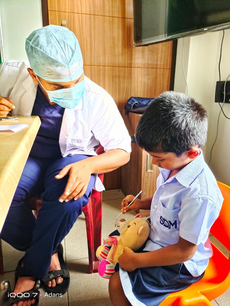 On 18th July 2022 , Kasturba Medical College, Mangalore initiated the ‘Teddy Bear Clinic’ School program in collaboration with the Department of Pediatric and Preventive Dentistry, Manipal College of Dental Sciences, Mangalore. This program was conducted for pre-school children with teachers of SDM School, Ashoknagar, Mangalore. It was conducted to spread the awareness of preventive health and dental issues. The Teddy Bear Clinic Program aims to reduce the anxiety in young children who have fear of doctors, hospitals, medical and dental procedures while enhancing their knowledge of health and diseases. Around 180 children aged 5-7 years got their favourite teddies to the school. As in the hospital setting, they registered their teddy names while presenting their complaints. Doctors demonstrated the clinical examination and showed usage of common instruments that will be normally used in the clinic. 13 Interns under the guidance of Dr. Ashwin Rao and Dr. Charisma Thimmaiah were a part of the program. At the end of the session, patient education booklets “Taking Care of Your Child’s Teeth” were distributed to all the pre-school children. The programme was well appreciated by the children and schools authorities.