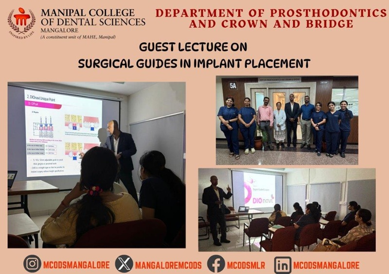 The Department of Prosthodontics organized a guest lecture on “Surgical Guides in Implant Placement” under the aegis of the Centre for Digital Dentistry. The resource person for the session was Dr. Hardik Shetty, an experienced implantologist associated with DIO Implants.