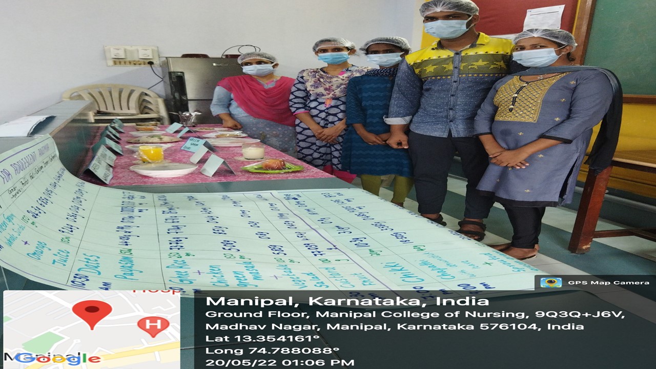 The I Year PBBSc Nursing students of Manipal College of Nursing, MAHE Manipal conducted Nutrition day “MCON CUISINES” as part of their curricular requirement on 20/05/2022.