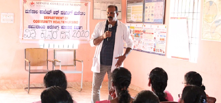 The Department of Community Health Nursing and students of IV year BSc Nursing, Manipal College of Nursing (MCON), MAHE, Manipal conducted WORLD CANCER DAY PROGRAMME on 5/2/2020 at Primary Health Centre, Hirebettu, Udupi district. Dr. Narasimha Nayak, Medical Officer, PHC Hirebettu was the chief guest for the occasion. Dr. Malathi G Nayak, Associate Professor, Dept. of Community Health Nursing presided over the function. The objectives of the program were to create awareness among ASHA workers regarding cancer and the role of ASHA workers in cancer prevention.