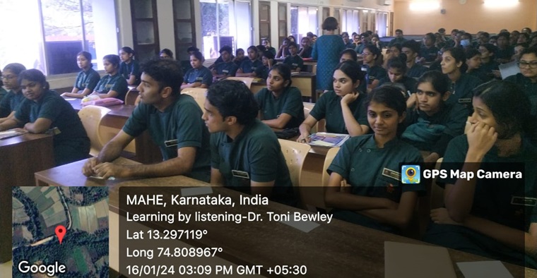 Dr. Toni Bewley, the adjunct faculty of MCON, senior teaching fellow, and program lead, School of Nursing, EdgeHill UK, visited MCON between January 15 and 19, 2024 During her visit, she took lecture sessions on "Lucy Letby: A Nightmare Horror" for 4th year BSc Nursing students, “Appreciative Inquiry (AI): A Qualitative Research Method” for Ph.D. Scholars, “Ethics, Morals, Policy, and the Law” for PBBSc and MSc Nursing Students, and “Learning by Listening: The Power of Patient Stories” for 5th semester BSc Nursing students. Also, a session on “Caring to Care: Post bereavement- what bereaved parents tell us” for the faculty from the Department of Nursing Foundation.