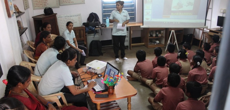 Health education committee of SNA 2019-20, Manipal College of Nursing, MAHE, Manipal organized an awareness program on ‘good touch, bad touch’ and ‘hand hygiene’ on 23rd September, 2019 at Aided Higher Primary School, Hirebettu. Health education on ‘good touch, bad touch’ and hand hygiene was given by Ms Adlin Dsouza and Ms Swathi Naik using power point presentation which was followed by a demonstration on hand hygiene by the committee members.