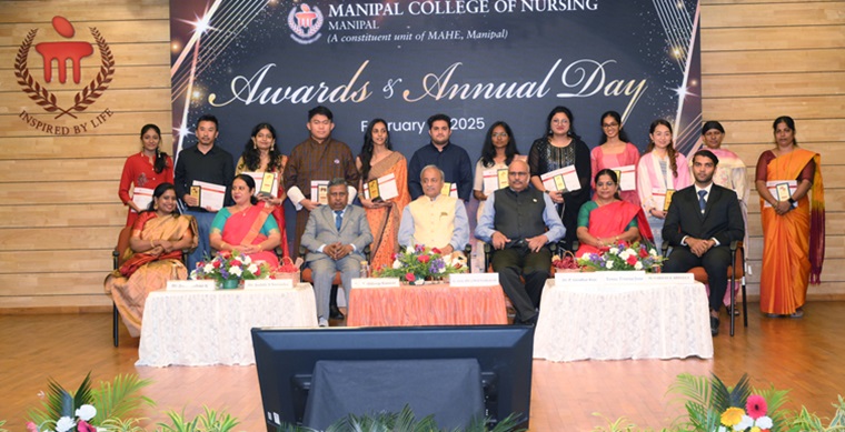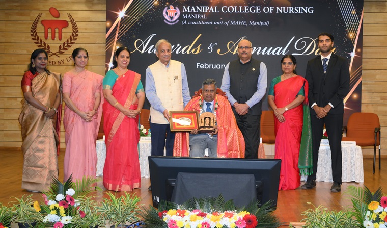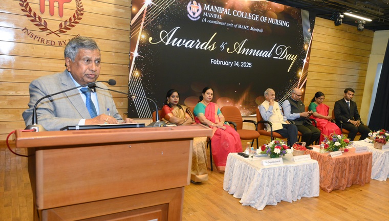 “In the future era of specialization, there is an increasing need for specialized nursing. Manipal has truly reached the length and breadth of the world with its excellence" said the Chief Guest of the day, Dr. T Dileep Kumar, President, Indian Nursing Council, New Delhi, during the 35th Awards and Annual Day of Manipal College of Nursing (MCON), Manipal Academy of Higher Education (MAHE), Manipal, held on 14 February 2025, at Dr TMA Pai Auditorium, MAHE, Manipal. He also emphasized the importance of a nurse in the health care delivery system and called for investing money in nursing, creation of nursing positions, interprofessional leadership and enhancing service delivery.