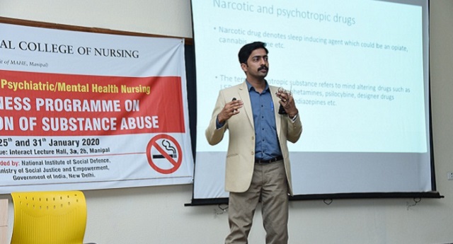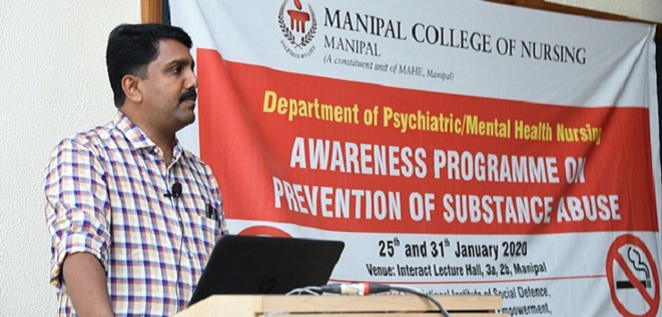 An awareness programme on “Prevention of Substance Abuse” was conducted by the Department of Psychiatric/Mental Health Nursing, Manipal College of Nursing, MAHE on 25.01.2020. This is funded by the National Institute of Social Defence, Ministry of Social Justice and Empowerment, Government of India, New Delhi. Around 100 students from Manipal College of Pharmaceutical Sciences attended it.