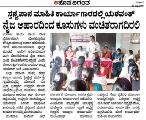 Rotary Club Udupi Royal, Shri Kshethra Dharmasthala Rural Development Scheme, BC Trust, Brahmavar Thaluk, Department of Women and Child development, Udupi, Manipal College of Nursing, MAHE, Manipal Jointly conducted an awareness program on importance of breast feeding at Government Higher Primary School Uppoor Jhathabettu on 25th August, 2019.