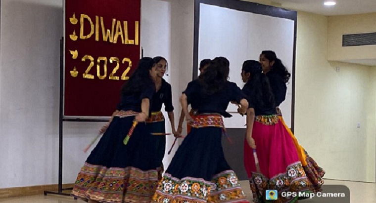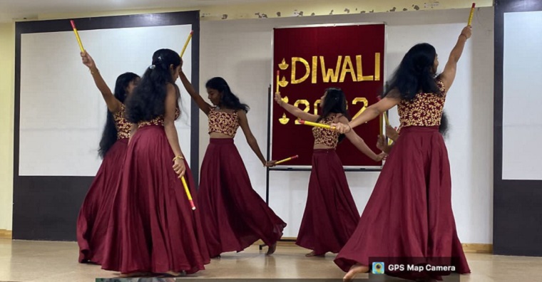 The Diwali celebration was organized by the Cultural Committee of the Student Nurses Association on 28 October 2022 at 3.00 pm at Dr.TMA Pai Hall, II floor. The Master of the Ceremony of the event Miss Rose Maria Baby, III year BSc Nursing welcomed the gathering. Students of I, II, and III BSc Nursing entertained the faculty and students with their remarkable dandiya dance performances.