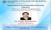 As part of the Effective Alumni Engagement Guest Lecture Series, a session on “Trust, Respect and Glory” was organized by the Department of Fundamentals of Nursing, Manipal College of Nursing, MAHE Manipal on 6th August 2022 at 10.30 am through the MS Teams online platform.