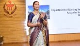 This was followed by a warm welcome address by Mrs. Geena Louis Dsouza, Lecturer, Manipal College of Nursing (MCON), Manipal, who greeted the freshers and dignitaries.