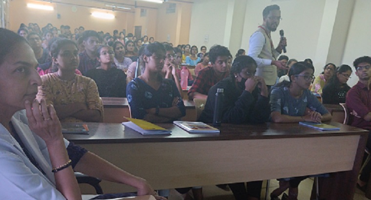 The Department of Fundamentals of Nursing conducted effective alumni engagement, guest lecture series 13/2023 at 3 PM on August 26, 2023, for the First Semester BSc nursing students. Mr. Vithoba Mhalkar, Asst. Professor, Institute of Psychiatric and Human Behavior at Bambolim, Goa, and Alumnus of MCON from the MSc nursing batch 2011- 2013, took a session on Enhancing Effective Communication: Emotional Intelligence (EI) Way.