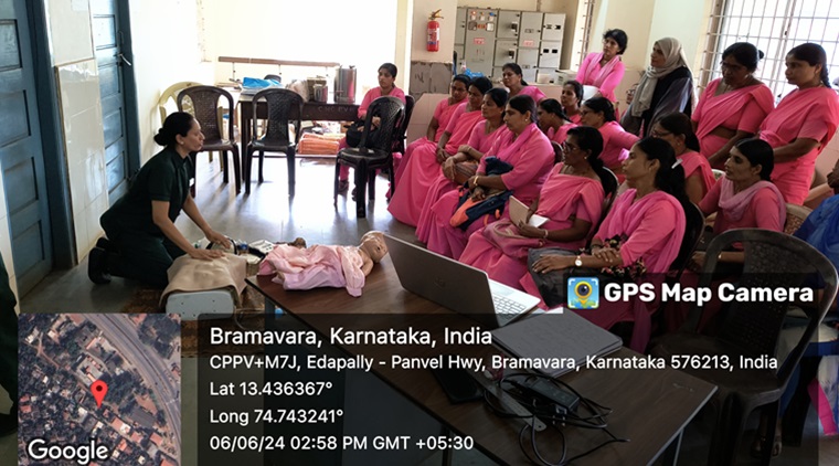 The Department of Community Health Nursing, Manipal College of Nursing (MCON), MAHE, Manipal, along with the students of I year MSc Nursing, organised a session on the topic of Cardiopulmonary Resuscitation (CPR) as part of in-service education for ASHA workers on June 6, 2024, from 2.30 pm to 3.30 pm at the Community Health Center, Brahmavara.