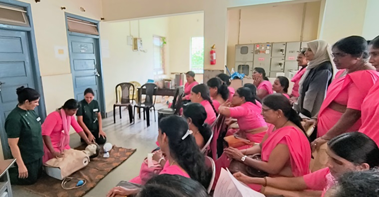 The program was started with a welcome speech by Mrs Clara, I year MSc student, MCON. The purpose of the session was initially explained to the participants. The session was conducted using the lecture method with demonstration techniques of CPR such as chest compressions, rescue breaths, and the use of an Automated External Defibrillator (AED), followed by a demonstration using a mannequin, an AMBU bag, and an Automated External Defibrillator (AED). Hands-on training was provided for those who were voluntarily willing to show the re-demonstration. A total of 22 ASHA workers, 3 ANM, and one CHO attended the program. Mrs Surekha, I year MSc student, MCON conveyed a vote of thanks.