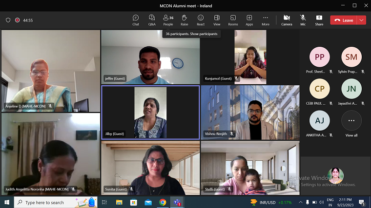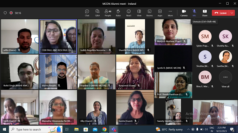 The Pillar 4 – “Effective Alumni Engagement and Relation” of Manipal College of Nursing, Manipal Academy of Higher Education (MAHE) initiated a virtual meet for its alumni in Ireland on 23.09.2023. Although MCON initiated the meet, alumni in Ireland were more than happy to meet on the online platform and begin with the “MCON Alumni Ireland”. Dr Cebi Paul (Alumni-Batch: BSc (N) 2003-2007, MSc (N) 2009- 2011) compered the meet enthusiastically. Dr Rohith Singh, Director-Alumni Relations, MAHE emphasized the need for alumni networking. He spoke on the need to build an alumni community, strengthen it, and stay connected with the alma mater – MAHE. Dr Judith A Noronha, Dean, MCON highlighted the journey of MCON, and presented each milestone achieved by MCON and MAHE proudly. Dr. Sunita Panda (AlumniBatch: MSc (N) 2002-2004) spoke on the scope for nurse and midwifery educators in Ireland, she presented the challenges faced, trends and issues in education, research, and practice. Dr Mamatha S Pai, Professor & Pillar 4 Head, MCON, enlightened the gathering on the activities of the pillar and the role of alumni relations in building the MCON, MAHE family all over the globe. Mrs. Kunjumol Mathew (Alumni-Batch: BSc (N) 1990-1994) spoke beautifully on compassion in healthcare and the importance of loving oneself. Dr. Anjaline Dsouza, Assistant Professor, MCON, oriented the alumni to the “Alma-shines” website. Dr Vishnu Renjith (Alumni-Batch: BSc (N) 2006-2010, MSc (N) 2011-2013, PhD (N) 2013-2017) spoke on the research avenues for nurses in Ireland. He presented his area of expertise – research in skin wounds and trauma to the participants. Dr. Besi Paul (Alumni-Batch: BSc (N) 2003-2007, MSc (N) 2009-2011) shared personal experience of her professional journey from Manipal to Ireland and encouraged young graduates in Ireland and Manipal to pursue higher education in nursing. The virtual meeting was a mixture of formal and informal conversations and information shared between the alumni. They expressed their gratitude towards the alma mater, exchanged pleasantries and hoped to have more such get-togethers in future. Mrs. Flavia S. Noronha, Assistant Professor, MCON rendered the expression of gratitude. A total of 50 participants attended this virtual meeting from various parts of the world.