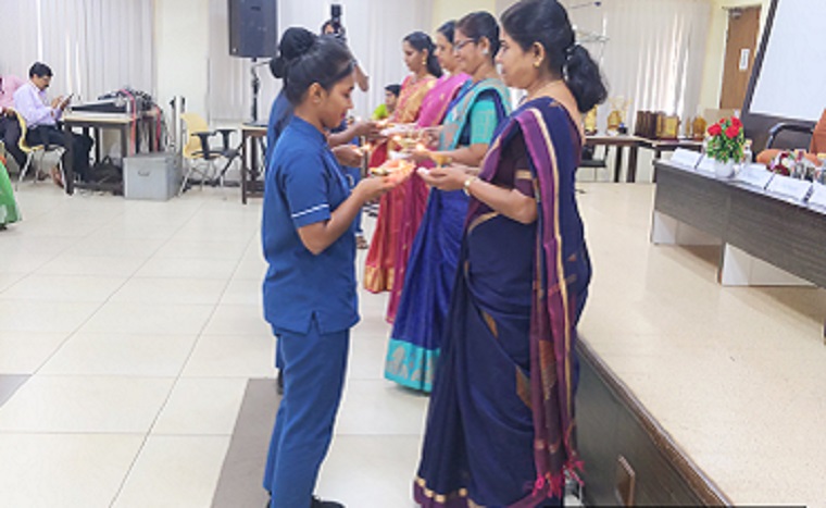 Dr. Suba Sooria P, Head - Nursing Services, Kasturba Hospital, Manipal was the chief guest for the programme. She congratulated the students who lit the lamp and addressed the importance of lighting the lamp. She also stressed on leadership quality of budding nurses and highlighted that education is not just the acquisition of knowledge but it builds character. She encouraged the students to be sincere to their profession and to become a leader in today's world, practice the values and have growth in their profession to reach their goals.