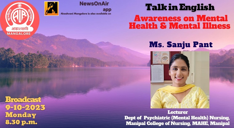 A radio talk on ‘Awareness of Mental Health and Mental Illness’ was broadcast at 8:30 pm in English and Kannada version on 9th and 10th Oct 2023 at 8:30 pm at Akashvani, Mangaluru by Ms. Sanju Pant, Lecturer, and Ms. Asha K Nayak, Assistant Professor, Sr-Scale, Department of Psychiatric (Mental Health) Nursing, MCON Manipal.