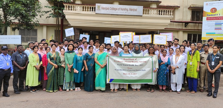 The Department of Psychiatric (Mental Health) Nursing, Manipal College of Nursing, MAHE, Manipal, along with the students conducted a series of events on account of observing World Mental Health Day 2023 on 9th and 10th Oct 2023, under the theme “Mental Health is a Universal Human Right”. The celebration aimed to bring awareness, inspire and voice out the importance and significance of mental health and mental illness for all. It highlights the need for mental health and mental illness advocacy, as the World Health Organization set to achieve the global objective “Comprehensive Mental Health Action Plan 2013-2030”. It comes under SDG 3, Good Health and Wellbeing.