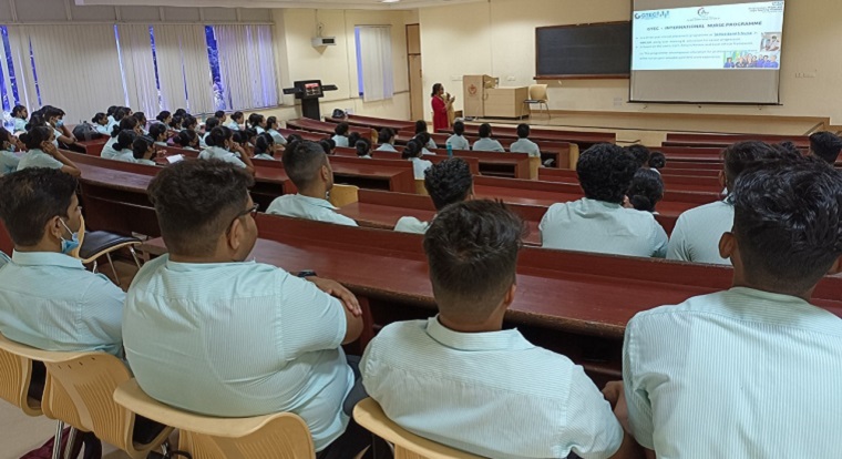 Ninety-eight third-year BSc Nursing students took part in the orientation top-up program for OET organized by GTEC CON, MAHE Manipal on October 12, 2022, at Interact Hall, MAHE, Manipal between 11.00 am to 12.30 pm. Mrs. Namrita Kamath, Head-operations excellence, Abhinava Global Academy oriented the students related to OET training, recruitment, and career building path to NHS UK. Dr. Elsa Sanatombi Devi highlighted the terms and conditions in academic training disciplines and vertical academic opportunities in the NHS UK. Class coordinator Mrs. Flavia Noronha was present for the event.