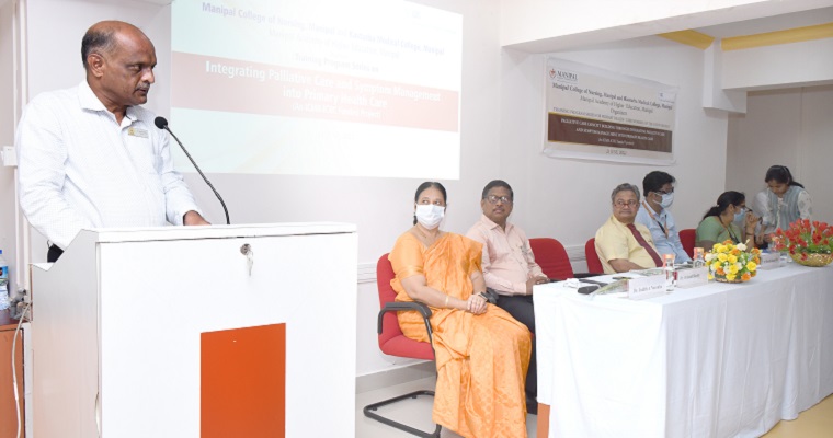 Manipal College of Nursing, Manipal, MAHE, Manipal and Kasturba Medical College, Manipal organized the inauguration of training program series for Primary Health Care workers on the topic “Effectiveness of capacity building- Integrating palliative care and symptom management” on 23rd June 2022 at 9.30 am at the Conference Hall of Shirdi Sai Baba Cancer Hospital and Research Centre, Manipal. Dr. Judith A Noronha, Dean, MCON welcomed the gathering. The Chief Guest of the program Dr. Nagabhushan Udupa, District Health and Family Welfare Officer, Udupi District highlighted the important role played by the ASHA workers in health care delivery. He also advised the participants to learn various aspects of palliative care delivery and thereby help the family members in their respective villages. Further, the Guests of Honor for the event Dr. Sharath K Rao, Dean, KMC Manipal, Dr. Avinash Shetty, Medical Superintendent, Kasturba Hospital Manipal, and Dr. Ashwini Kumar, HoD, Department of Community Medicine, KMC also addressed the gathering. Dr. Malathi G Nayak, the Principal Investigator of the Project thanked the gathering. A total of 70 primary health care workers participated in the program.