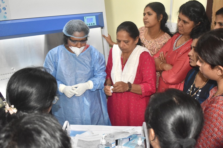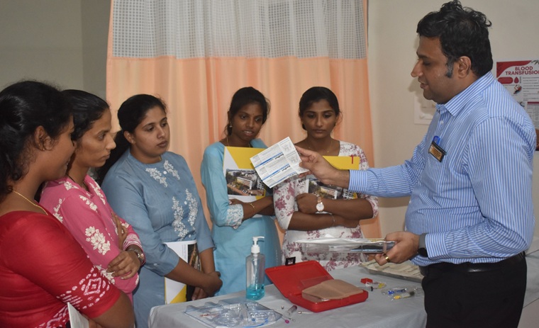 The fourth session, “Chemo Safety, Line Care, and Onco Emergency: A Hands-On Discussion”, provided practical training. Participants were divided into three groups and rotated through stations on chemotherapy preparation and spill management led by Mrs. Reena
