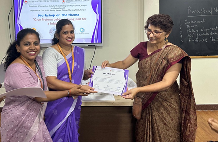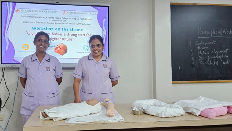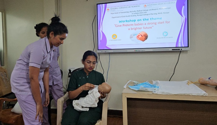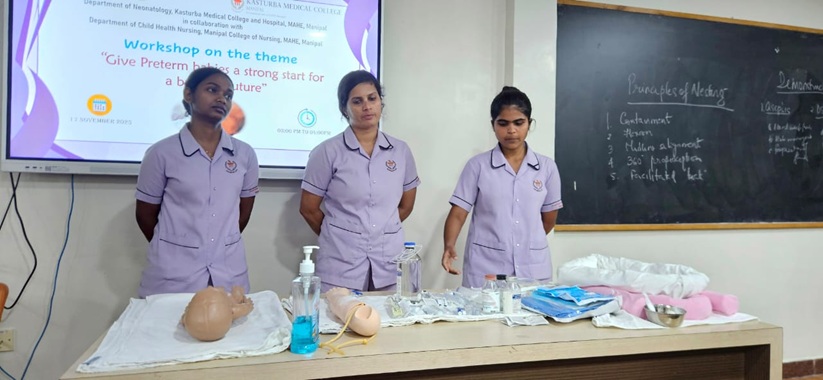 The Department of Child Health Nursing, Manipal College of Nursing, Manipal (MCON), Manipal Academy of Higher Education (MAHE), in collaboration with the Department of Neonatology, Kasturba Medical College (KMC), Manipal, observed the Newborn Week celebration. The theme for this year was “Give Preterm Babies a Strong Start for a Brighter Future”. The program was conducted with an aim to create awareness among the parents and caregivers of newborns and premature babies, healthcare professionals, and students to promote practices that ensure healthy survival of the newborns, thus contributing to attainment of the Sustainable Development Goal (SDG) 3, “Good health and well-being and goal 4, Quality Education.