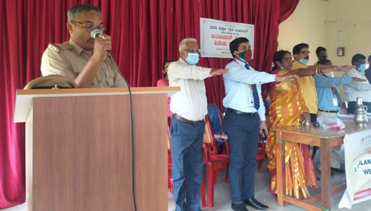 Department of Community Health Nursing organized an awareness programme on ‘The Effects of Corruption and its Prevention’ on 25.10.2021 at Hirebettu- Athradi Panchayat, Udupi. Mr Nagesh Nayak, Assistant Sub-Inspector, Manipal Police Station, Manipal was the Resource Person for the event. He discussed the types of corruption and gave an overview of the effects of corruption. He insisted general public not to give bribes in the form of money or gift and also accept any form of bribe. He explained to the audience, whom to approach in case they come across or witness any corruption. The session ended with open discussions and the pledge was administered as per the directions of UGC. A total of 62 people including the general public, people from Athradi and Hirebettu village, nursing students, panchayat members, members of the rotary club, and members of VSO, MAHE also were attended the said program.