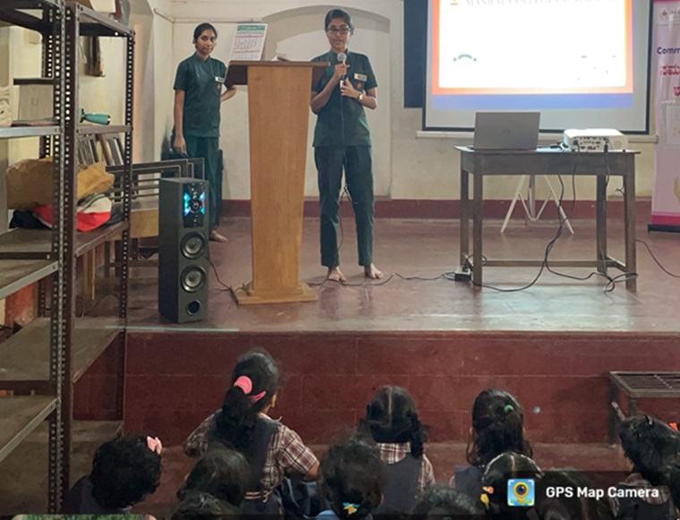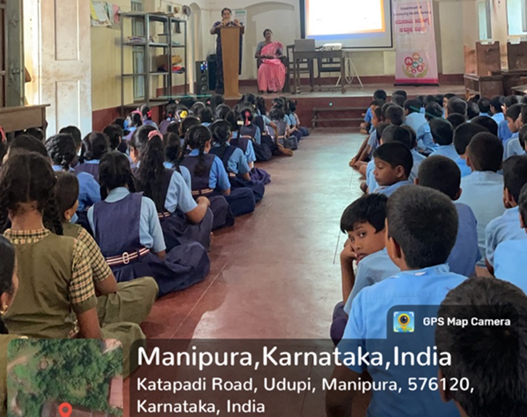 For female students of 5, 6, and 7th classes, Ms. Anvika T Maidan, MSc nursing student, conducted a session on the reproductive system, physical growth, menstrual health, and hygiene. The event concluded with a vote of thanks proposed by Mr. Prasad, the school teacher.
