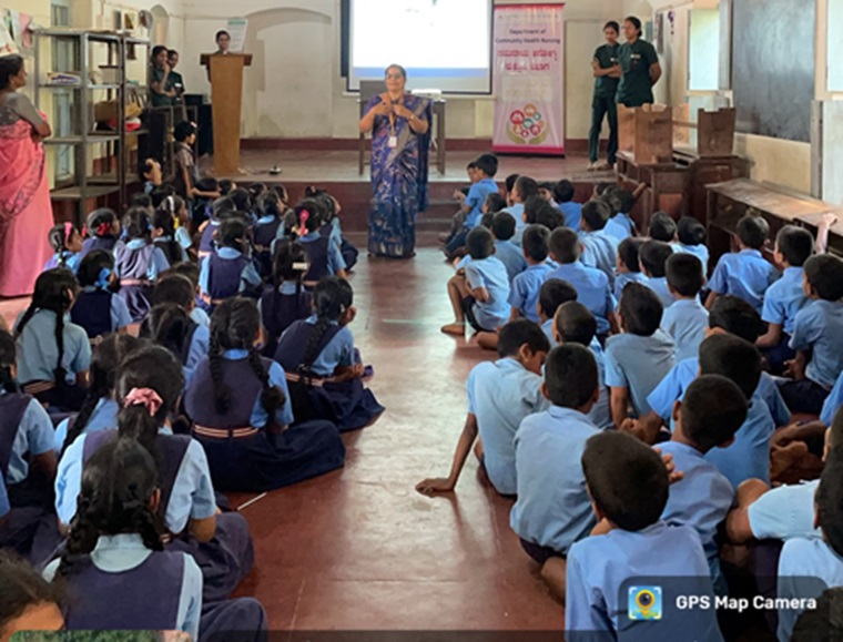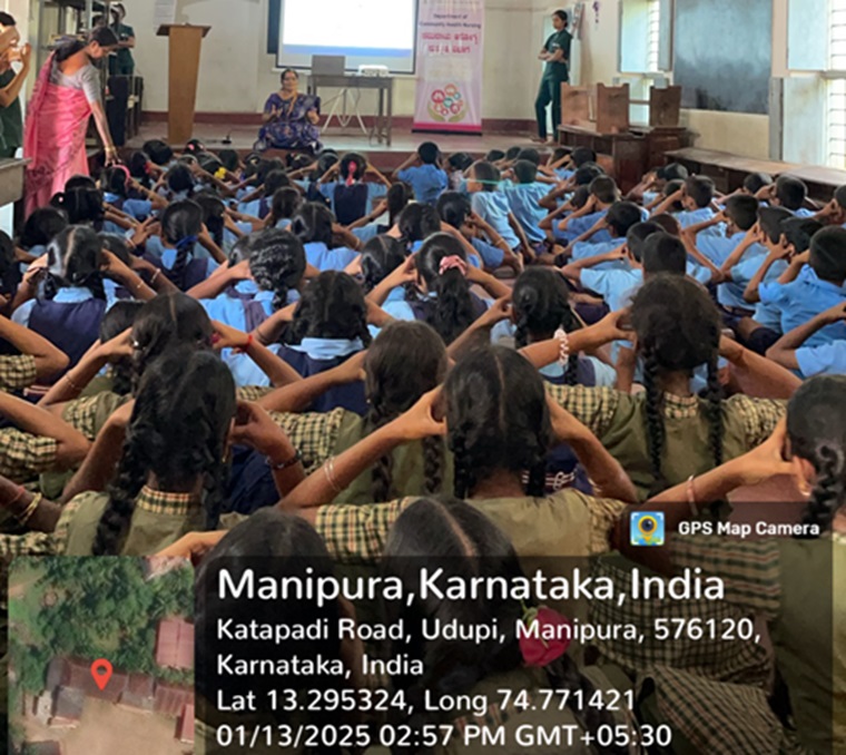 The department of Community Health Nursing, MCON, MAHE, Manipal, along with 7th semester BSc and First year MSc nursing students organized an awareness session on “Personal hygiene and Healthy lifestyle” on January 13, 2025, at the Government Higher Primary School, Manipura, Katpady as part of the school health and wellness drive, from 2:00 PM to 4:00 PM.