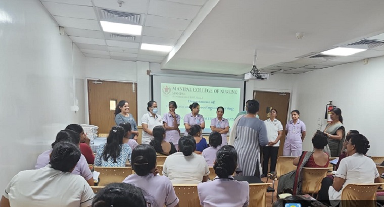 The faculty of the Department of Obstetric and Gynaecological (OBG) Nursing along with II year MSc nursing students – OBG specialty, Manipal College of Nursing (MCON), MAHE, Manipal, organized an In-service education program for the staff nurses of Women and Child Health Block, Kasturba Hospital, Manipal based on the International Day of Midwives (IDM) theme “Together again; from evidence-based to reality.” The topic for the in-service education was ‘Real world significance of Evidence-Based Practice (EBP) for the midwife”, which was deliberated by Ms. Shobha, Lecturer, Department of OBG Nursing, MCON, MAHE, Manipal, who spoke a great deal on why EBP is essential for the practice of midwifery. She also elaborated on how EBP in nursing has changed a great deal of midwifery practice and how redundancy in professional practice is and can be reduced to a great extent. Many examples to explain this concept were also provided, which encouraged many nurses and midwives, to participate actively in the discussion that took place at the end of the session. A total of 36 participants, who included the nursing staff, Assistant Nursing Supervisors (ANSs), and the Nursing Quality team of Kasturba Hospital, Manipal attended the In-service education program. Participants provided feedback for the program.