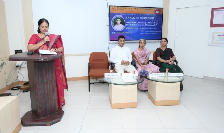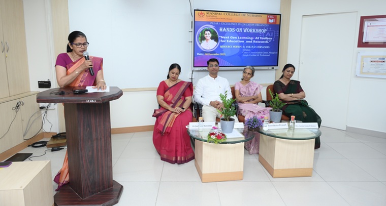 The Manipal College of Nursing (MCON), Manipal Academy of Higher Education (MAHE), under the initiative of Pillar I – Excellence in Education, organized a comprehensive workshop titled “Next Gen Learning – AI Toolbox for Education and Research” on 06 December 2025 at the Medical Education Hall, Second Floor, Library Building, MAHE, Manipal. The program aimed to enhance the understanding of faculty, researchers, and students regarding the effective integration of Artificial Intelligence (AI) tools and their application into teaching, learning, and research.
