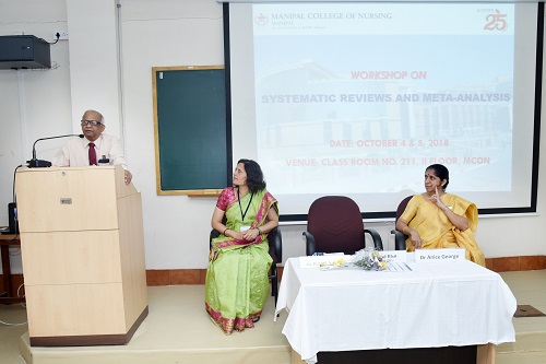 Workshop on systematic review and meta-analysis was organized by full time PhD scholars of Manipal College of Nursing, MAHE, Manipal on October 4th and 5th 2018.
