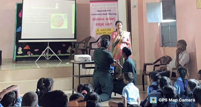 On November 15, 2023, the Department of Community Health Nursing and the final-year BSc Nursing students conducted a diabetic screening and awareness program for class IV workers of MAHE, Manipal, at MCON. A total of 62 participants were registered and screened for diabetes mellitus, and 11 people identified with increased random blood glucose were referred for further checkups. Health awareness on diabetes mellitus was also conducted between 10:45 a.m. and 11:45 a.m., and 48 participants attended the program. On November 16, 2023, the fifth-semester BSc Nursing students organized an awareness program between 11.30 a.m. and 12.30 p.m. at Government Higher Primary School (GHPS), Athrady, and presented a role play on the theme “Access to Diabetes Care," followed by a short quiz for the students of GHPS school. A total of 60 schoolchildren participated in the program. The activities were coordinated by Mrs. Jeyalakshmi K. and Mrs. Manjula, Assistant Professor, Department of Community Health Nursing, MCON MAHE, Manipal.