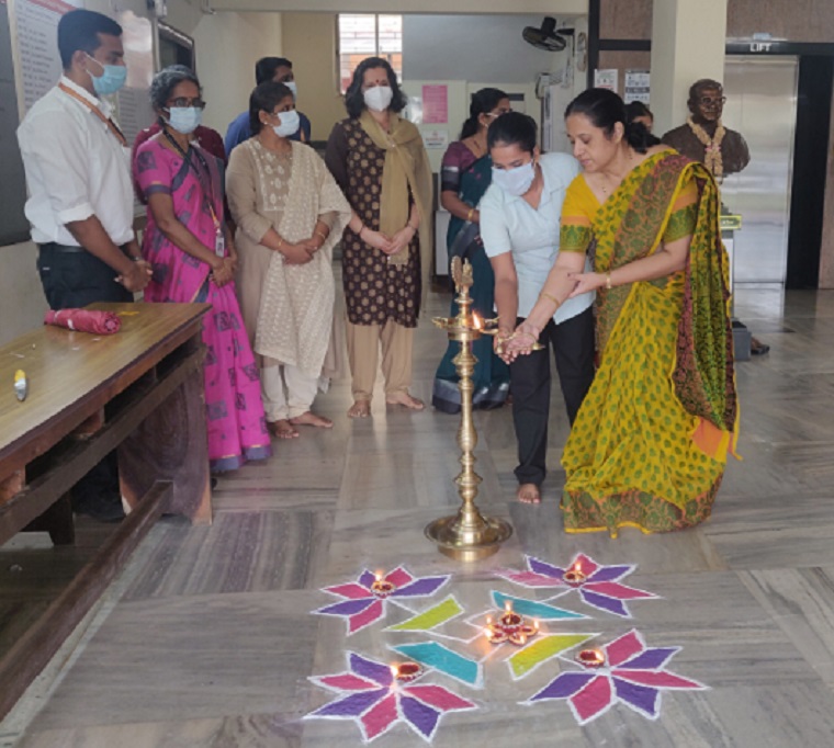 Diwali celebration was organised by the Cultural Committee of Student Nurses' Association 2021-22 on 5th November 2021. The formal inauguration of the Diwali celebration was held at 10.00 AM by Dr Judith A Noronha, Dean, MCON by lighting the auspicious lamp. The teaching and non-teaching members of the college and the SNA office bearers also were part of the ceremony.