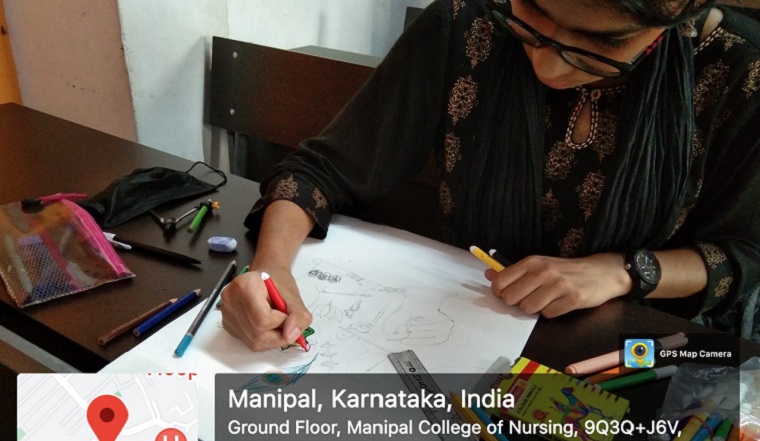 Manipal College of Nursing, MAHE, Manipal has organized a drawing competition on the theme “India’s Independence” on August 13, 2022, between 2.00 pm and 3.00 pm. Two students participated in the competition. This competition was related to the circular from University Grant Commission (UGC) on Har Ghar Tiranga dated 19th July 2022 and was coordinated by Ms. Shalini G Nayak, Assistant Professor; Manipal College of Nursing MAHE Manipal.