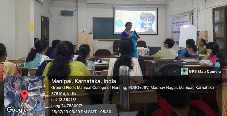 The Continuing Nursing Education committee of Manipal College of Nursing MAHE Manipal organized Faculty Development Program on July 24 & 25, 2023. The chief guest, Dr K Ramnarayan, Pro chancellor, Sikkim Manipal University, Emeritus Professor of Medical Education – MAHE, sensitized the faculty about formal and informal quadrants of individual and group learning and mentioned that faculty Development program occurs on day to day basis.