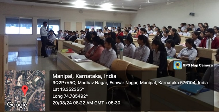 The Department of Medical-Surgical Nursing, Manipal College of Nursing (MCON), Manipal Academy of Higher Education (MAHE) organized a guest lecture for third-semester BSc Nursing students on ‘How nurses can care and uphold core values’ on August 20, 2024, between 8.00 am and 9.00 am at Lecture Hall 2, third floor, Basic Sciences building MAHE, Manipal. Mr Gilbert Martis, RGN, Principal Trainer, CEO, & Director, Health Skills Training Academy, England, was the resource person for the session. In his deliberation, he mentioned that it is vital for nurses to keep personal problems separate from the clinical setting to maintain a clear focus on patient care, ensuring that personal stressors do not compromise their judgment or performance. He highlighted that maintaining proper energy levels and body posture is crucial for nurses, as it directly impacts their ability to provide safe and effective patient care. He also explained the importance of teamwork, fostering collaboration, the importance of human touch, good communication for the overall well-being of the patients. The session benefited 124 students in the third semester, MCON MAHE, Manipal. This session was centered on Sustainable Development Goals (SDG) 3 & 4, i.e. Good health & wellbeing and Quality education, respectively. The event was organized and coordinated by Dr Shalini G Nayak, Assistant Professor, Medical Surgical Nursing, MCON, MAHE Manipal.