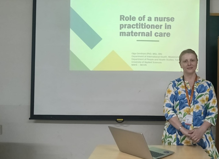 The resource person for the session was Dr. Olga Gershuni, Faculty, Fontys University of Applied Sciences (Eindhoven) and Maastricht University, Department of International Health (Maastricht), The Netherlands, and International Faculty of MCON, MAHE, Manipal. During her session, she provided a comprehensive overview of the role of nurse practitioners in antenatal, intranatal, and postnatal care. She emphasized the importance of providing sensitive and respectful care to women, promoting informed and shared decision-making by nurse practitioners, and treating women with dignity as individuals rather than merely as patients.