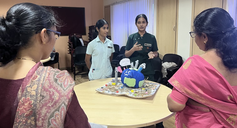 The Student Nurses' Association 2023–24 The education committee organized an installation competition on November 9, 2023, between 2:00 and 4:00 pm. A total of 12 students participated in the competition in groups of two each. The groups were given two hours to prepare their models and two minutes to explain their respective themes to the judges. Every group put their imaginations to work creating models based on timely subjects such as conflict, social media usage, pollution, traffic laws, global warming, and waste management. Dr. Tessy Treesa Jose, Associate Dean, Manipal College of Nursing, MAHE, and Dr Melita Sheilini, Assistant Professor - Selection Grade, Department of Medical-Surgical Nursing, MCON, MAHE, judged their ideas. First place was bagged by Ms S L Priyanka, 4th year BSc Nursing and Ms. Cimona Nazareth, 3rd year B.Sc. Nursing, second place by Ms. Sharon Vinola, 1st year BSc Nursing and Ms. Flavian Dsouza, 4th year BSc Nursing. Third place was bagged by Ms. Vina Tina Dsouza and Ms. Raksha Nayak, 4th year BSc Nursing.