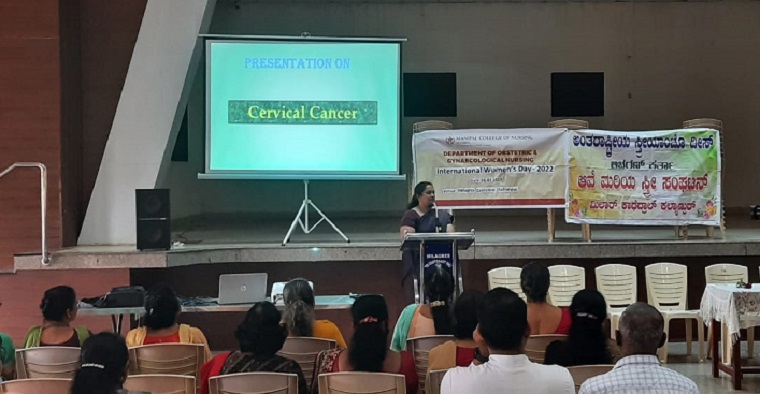 The department of Obstetrics and Gynaecological Nursing, Manipal College of Nursing, Manipal Academy of Higher Education (MAHE), Manipal, in collaboration with Ave Maria Women’s cell of Milagres Cathedral, Kallianpur organized an outreach program and health camp, on the occasion of International Women’s Day, on 6th March 2022, from 9.30 - 11:00 am for all the women at Milagres Tri-centenary Hall, Kallianpur.