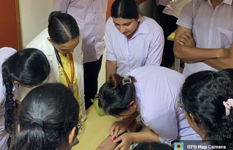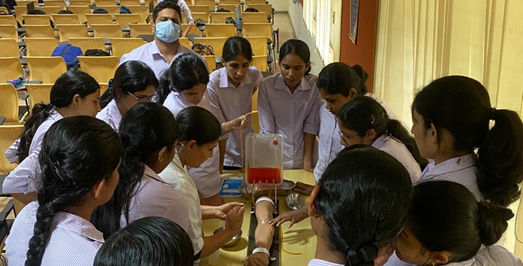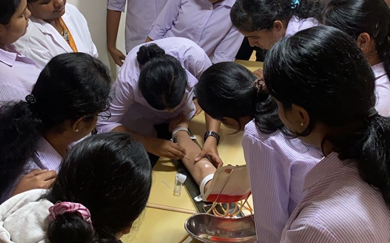 In the afternoon, a skill development session was held at 2.00 pm in the Clinical Skill Lab of MAHE. Mr. Anil Raj, Assistant Professor, Department of Medical Surgical Nursing, provided an overview, followed by hands-on demonstrations overseen by Dr. Sulochana, Associate Professor, Department of Fundamentals of Nursing, Mrs. Rishmitha and Ms. Catherine, Lecturers, Department of Medical Surgical Nursing, and Mrs. Reshma, PhD Scholar, Department of Medical Surgical Nursing. The session focused on enhancing skills in canulation, concluding at 4 pm.