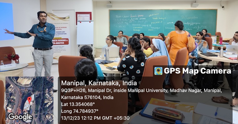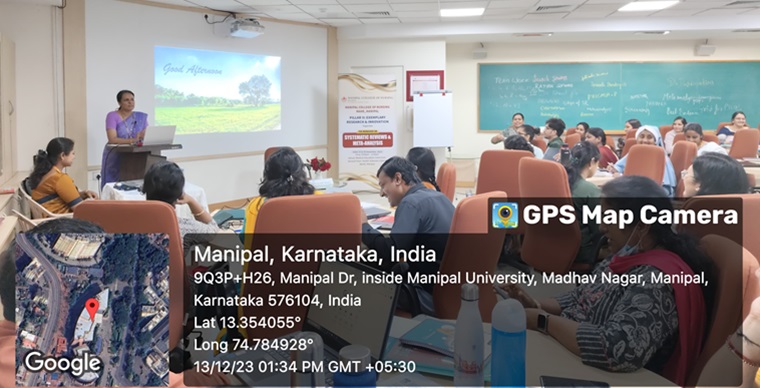 The first session of the day was on Introduction to Systematic Reviews and the development of a systematic review protocol, including PROSPERO registration. It was delivered by Mr. Anil Raj, Assistant Professor, Dept. of Medical-Surgical Nursing, MCON, Manipal. He has elaborated on the steps of developing a systematic review protocol and process for PROSPERO registration. Ms. Mitchelle Lewis, Lecturer, Dept. of Fundamentals of Nursing, MCON, MAHE, delivered the second session on Framing a systematic review question/PICOTS. She has focused on various elements of developing a review question by enumerating the PICOTS. The post-lunch session was held on formulating a search strategy and database search, which was a practical hands-on session using various online databases by Dr. Baby S. Nayak, Professor & Head, Department of Child Health Nursing, Head, Pilar II Exemplary Research & Innovation. She has explained various search strategies using different databases, developing a search grid, and methods of presentation in publications. The last session of the day was a hands-on session on data collection and de-duplication of studies using Rayyan software by Mrs.Prima J.J. Dsouza, Assistant Professor, Dept. of Fundamentals of Nursing. She has elaborated on various strategies employed in data deduplication using the software.
