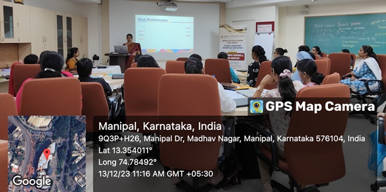 On December 13, the second day of the workshop started with a recap of the previous day's sessions by Dr Baby S. Nayak, Professor and Head, Department of Child Health Nursing, and Head, Pillar II Exemplary Research & Innovation. The first session for the day was on the selection of studies and data extraction, which was dealt by Dr. Anupama D. S., Research Fellow, Dept. of Global Health Governance, PSPH, MAHE. She has focused on the purpose, the process of screening the articles, and the selection of studies for the systematic reviews. The second session for the day was held by Dr. Judith A. Noronha, Professor and Dean, MCON, MAHE, Manipal, on assessing the risk of bias. She has explained the types and assessment of bias and various standard templates used for the assessment of bias based on the design of the studies, which was followed by a session on RevMan software by Mr Anil Raj. Assistant Professor, Dept. of Medical-Surgical Nursing, MCON, MAHE. It was a hands-on session on the application of RevMan software for the RCTS. The post-lunch session was on PRISMA and reporting of the systematic review by Dr. Sonia R.B. Dsouza, Professor and HOD, Dept. of OBG Nursing. The last session of the day was on Introduction to Meta-analysis by Dr. Vasudeva Guddattu, Professor, Dept. of Data Sciences, PSPH, MAHE. He has explained the process of statistical analysis using JAMOVI software.