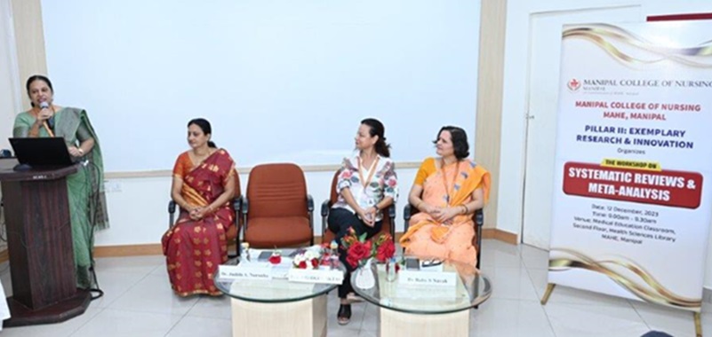 Pillar II: Exemplary Research and Innovation, Manipal College of Nursing (MCON) Manipal organized a workshop on ‘Systematic Reviews and Meta-Analysis’ from December 12th to 13th, 2023, at the Medical Education Department classroom, MAHE. Forty-eight participants attended the workshop, including faculty members and research scholars from different institutions in India. The workshop aligned with Sustainable Development Goal 4, Quality Education.