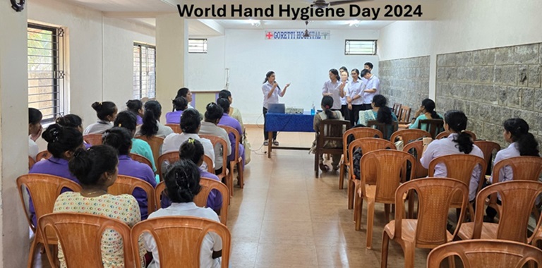 The Department of Fundamentals of Nursing, Manipal College of Nursing, MAHE, observed World Hand Hygiene Day on May 6, 2024. The theme for the year 2024 is Accelerate Action Together; SAVE LIVES – Clean Your Hands. Considering the theme for the year, the faculty and Semester 2 Basic Nursing students organized an awareness session on the importance of infection control in hospitals and the steps to be followed for hand hygiene for the nursing aides in Goretti Hospital, Santhekatte, Udupi. The students explained the importance of infection control, the indications of when a healthcare professional must wash their hands, and the waste management practices being followed in the hospital. Then, the steps of hand hygiene were explained and demonstrated. The students presented the steps of hand hygiene in the form of a dance to involve the participants. The audience then demonstrated the procedure and expressed their understanding of the importance of hand hygiene. The students also interacted with the old age residents in the hospital and showed them the dance of performing hand hygiene.