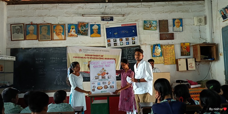 An outreach program was organized by the First Year Post Basic BSc (PBBSc) Nursing students of Manipal College of Nursing (MCON), Manipal Academy of Higher Education (MAHE), Manipal, on September 20, 2024, under the guidance of Dr. Sangeetha Priyadarshini, Assistant Professor, Department of Child Health Nursing, MCON. The event took place between 3:00 PM and 4:00 PM and aimed to raise awareness on "Nutrition for Healthy Childhood and Personal Hygiene" for 50 students of classes IV and V of Academy School, Manipal.