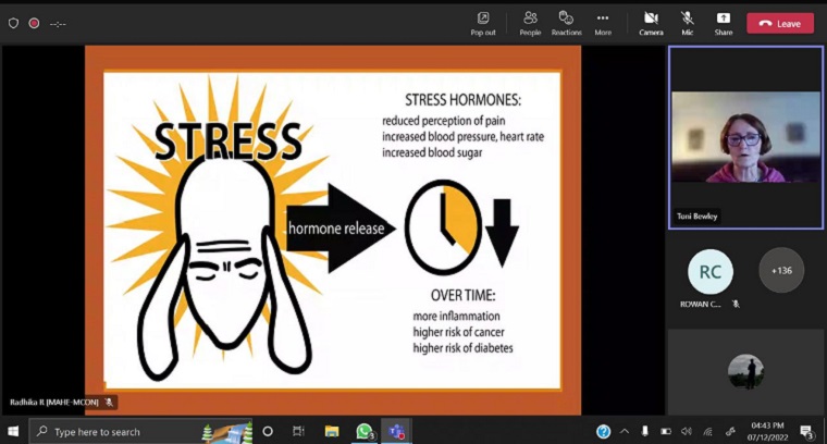 As part of the Student Collaboration activity, a session on “Overcoming Stress Experience” was organized by the department of Fundamentals of Nursing on 7th December 2022 from 03:30 pm to 05:30 pm through the MS teams virtual platform.