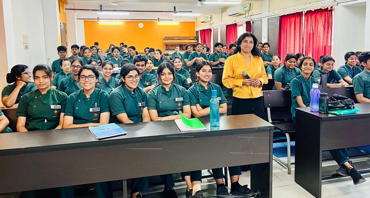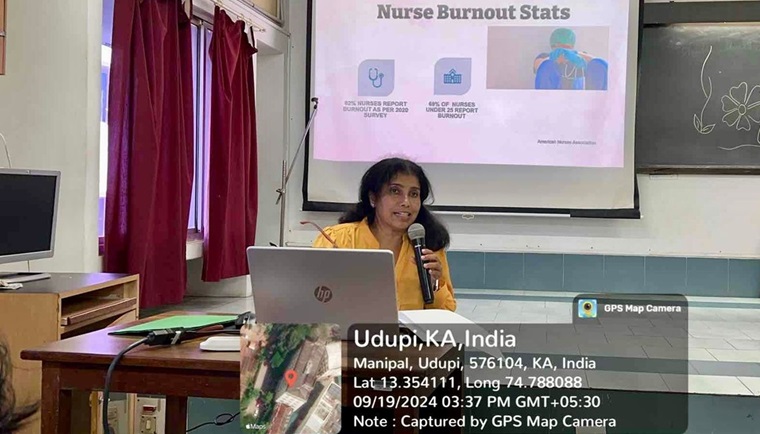 A session on “digital well-being’” was taken to the 1st semester BSc. Nursing students between 11.30 am and 12.30 pm. She has emphasized the positive draws of digital technology, screen time limits, and digital self-care tips. The “Emotional intelligence and self-awareness” session was delivered to PhD scholars at 2.30 pm. She emphasized the difference between emotions and feelings, the importance of introspecting oneself using Johari’s window, and the importance of EQ over IQ. A session on “building resilience in clinical practice” was conducted for the students of the 5th semester BSc. Nursing. She highlighted the nurse burnout among mental health nurses and the importance of managing stress. She further discussed various ways of balancing life and building resilience among nurses. These sessions helped in achieving the Sustainable Development Goals of Quality Education (SDG 4), and Partnerships for the Goals (SDG 17). The visit was coordinated by the Department of Psychiatric (Mental Health) Nursing.