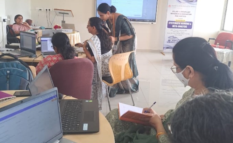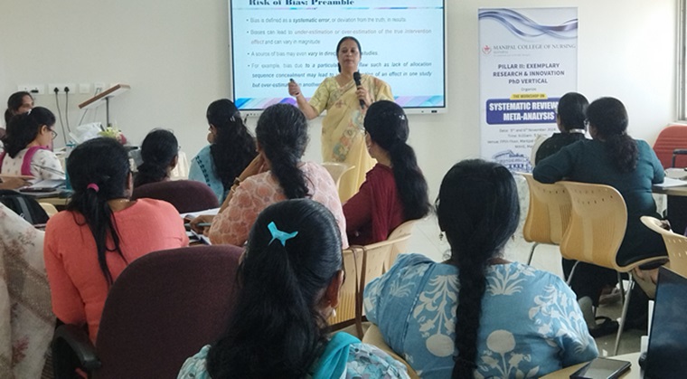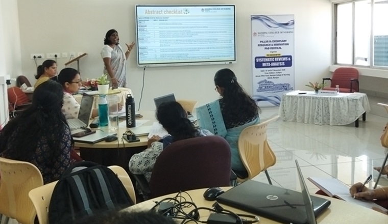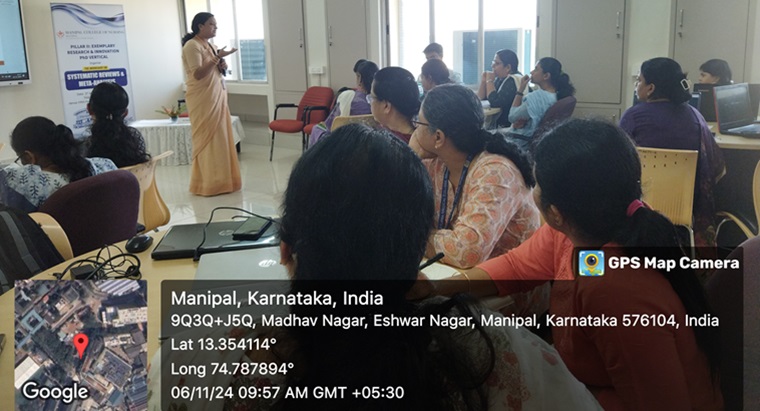 The workshop on Systematic Review and Meta-Analysis was organized by Ph.D. vertical of Pillar II Exemplary Research and Innovation, Manipal College of Nursing, Manipal Academy of Higher Education (MAHE) Manipal on 5th and 6th November 2024 from 9.00 am to 5.00 pm. Dr. Judith A. Noronha, Dean, Manipal College of Nursing, Manipal, welcomed the gathering. Dr Baby S. Nayak, Professor & Convenor of the program, provided an overview of the workshop. The chief guest, Dr Cherian Varghese, Professor & Director, Prasanna School of Public Health, MAHE, Manipal, addressed the participants about the need for systematic review in bringing about changes in clinical practice. He also emphasized that Meta- Analysis is the best approach to generate evidence.